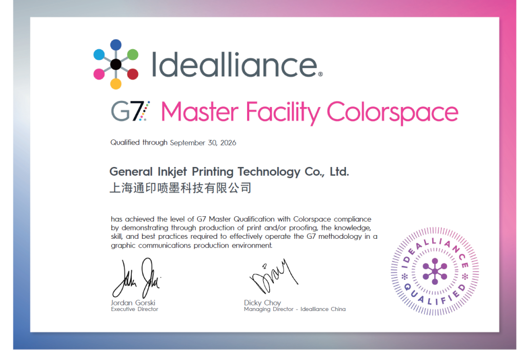 近日,通印旗下标签系列数码喷墨印刷设备,成功通过国际色彩权威机构 IDEAlliance 认证的 G7 Master Qualification 最高级资质!